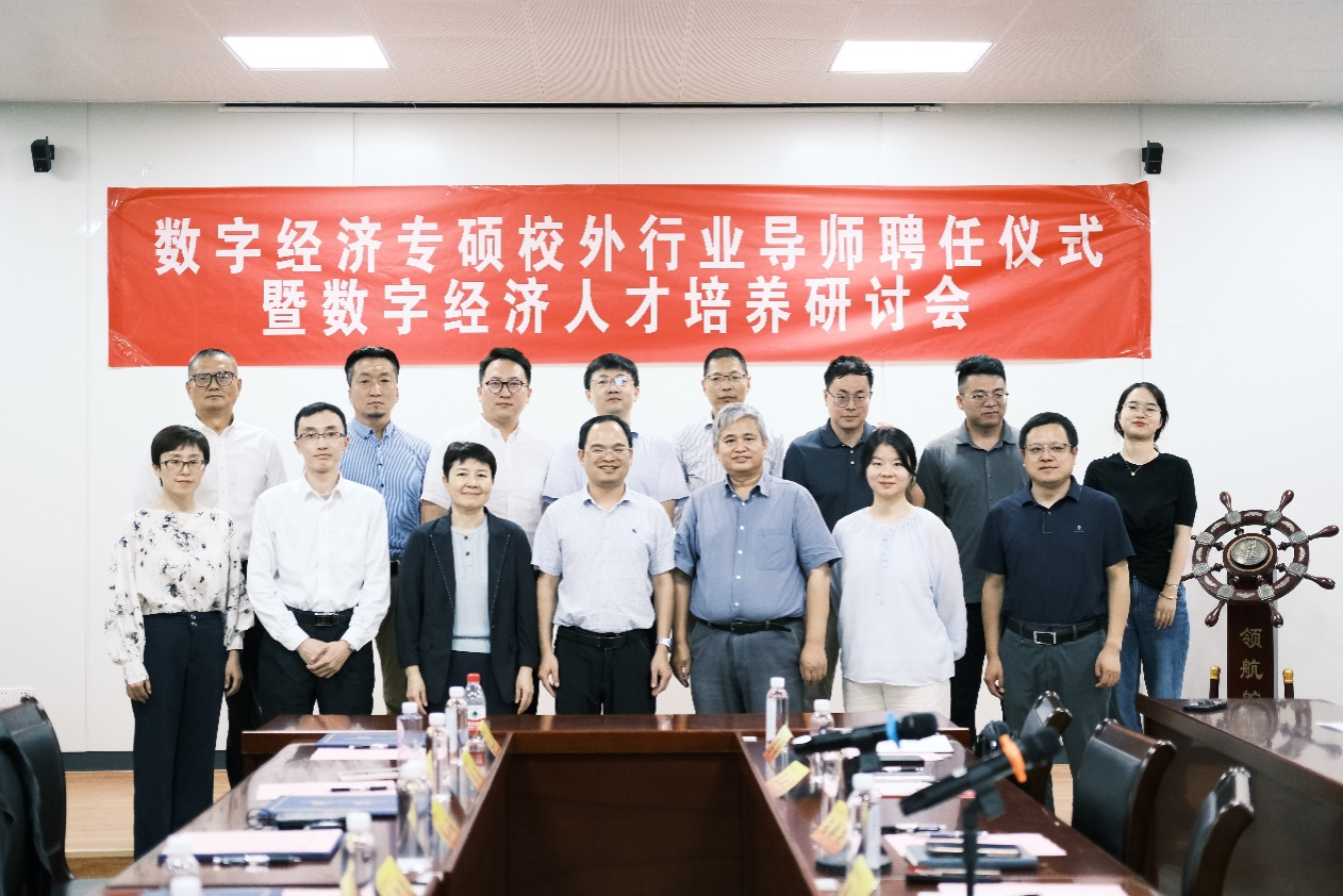 随后,举行数字经济硕士研究生校外导师聘任仪式。刘小峰院长依次为陈小飞(国盛证券资产管理有限公司)、董松涛(中盛评估咨询有限公司)、胡小梅(南京诺唯赞生物科技股份有限公司)、李陈(南京证券股份有限公司)、陆燕青(南京八卦洲跨境服务产业有限公司)、全洪波(万互智能通信科技研究院有限公司)、徐忠强(南京经典国际拍卖有限公司)7位校外导师颁发聘书。