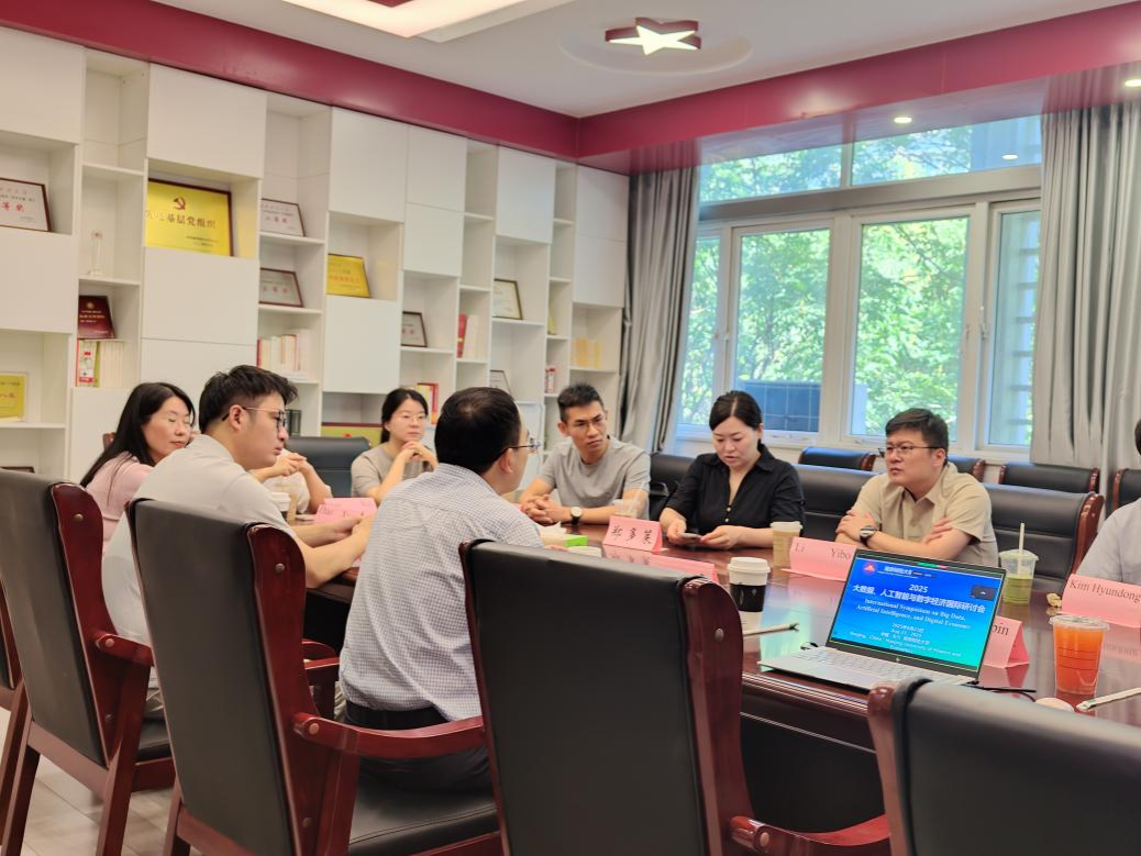 2025年8月23日上午,由william威廉中文主办的“大数据、人工智能与数字经济国际研讨会”在德经楼329会议室成功召开。会议聚焦大数据与人工智能在数字经济中的前沿应用,吸引了来自中韩两国多所高校的专家学者参与,围绕相关学术议题展开了深入交流,并就数字经济与统计学科的融合发展进行了合作探讨。会议首次采用AI同声传译软件在线翻译,实现中韩语无障碍交流。