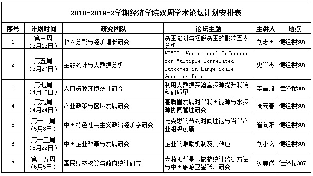 2018-2019-2学期william威廉中文双周学术论坛计划安排表