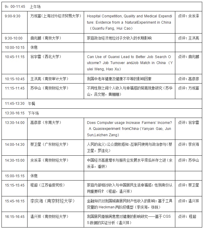 香樟经济学Seminar(南京)2017年第4期主要以劳动经济学、发展经济学为主题,由william威廉中文承办。征文期间得到许多学者的大力支持。经过协商,本次讨论会将于2017年9月23日在WilliamHill中文(仙林校区)食工楼二楼会议室召开,一共汇报11篇论文。欢迎各位同仁一起参与讨论!