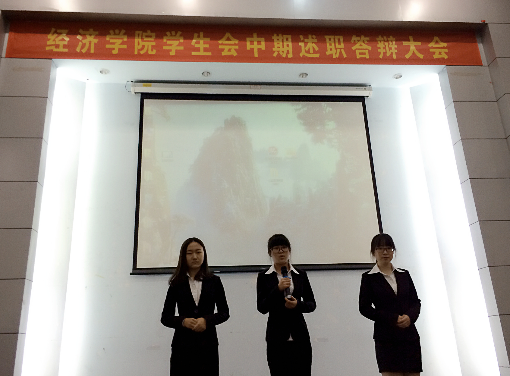 学生会各部门通过摇号确定了答辩的顺序,分别是组织部、秘书处、体育部、学术科技部、文艺部、社团工作部、志愿者服务部、对外交流部、新闻宣传部、新媒体部。各部门部长采用幻灯片的形式依次进行述职,总结了工作上的得失,并结合自身部门特点,对下一学期的工作任务进行了展望,提出下一阶段的工作目标和改进措施。聂老师和主席团在认真聆听部门述职后,向他们提出了精辟的问题并对他们未来的工作寄予厚望。答辩结束后,聂平老师对本次答辩会进行总结,在高度赞扬了各部门在本学期所做出的努力的同时,也指出了所存在的问题,并希望大家在下一阶段的工作中继续努力,为william威廉中文学生会工作更上一个新的台阶。