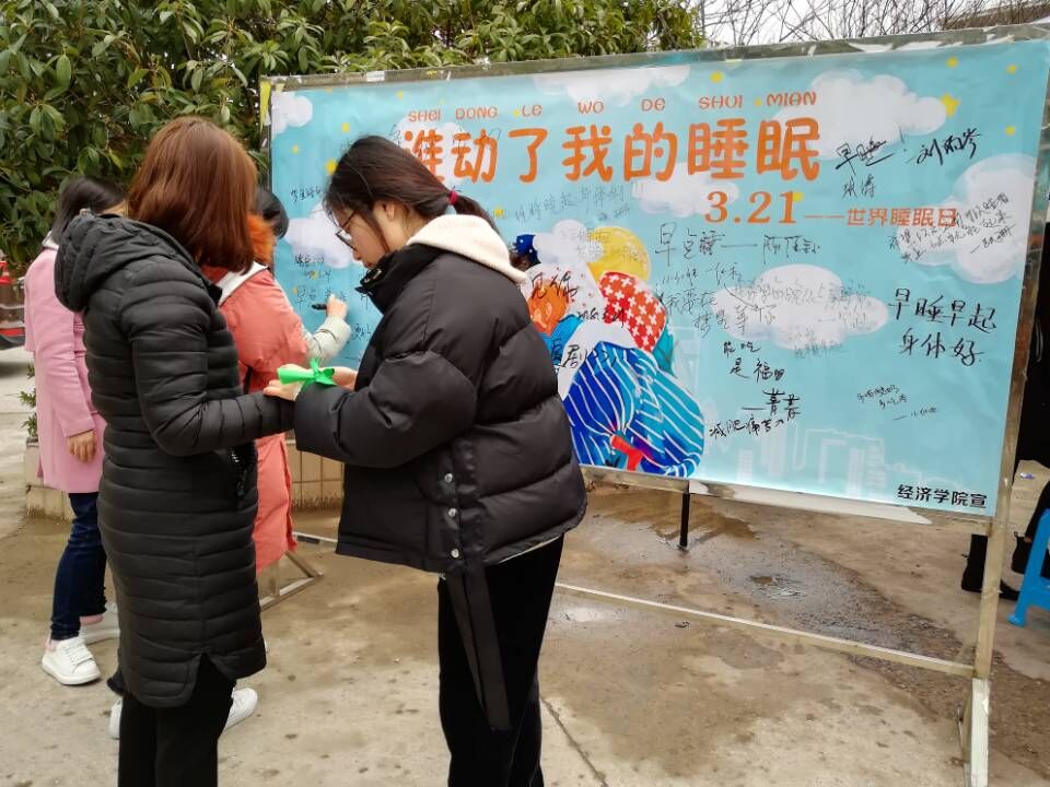 为倡导大学生放下手机,健康睡眠,我院于3月21日中午,在我校仙林校区中苑食堂外的广场,举办了“谁动了我的睡眠”为主题的世界睡眠日活动。