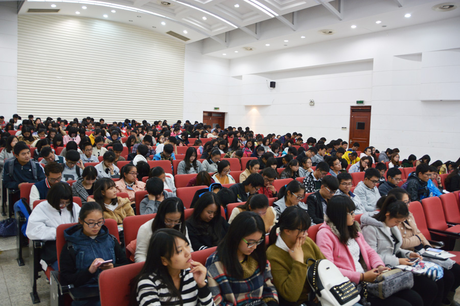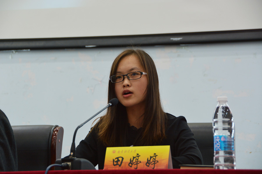 首先开讲的是我院学生会主席、国家奖学金获得者宫铭,她主要向同学们分享了大学竞赛、社团活动和学习上的一些经验:大学竞赛首先要有兴趣、有意义,找到志同道合的伙伴,以及多参加校外竞赛;在社团与学习方面,要合理协调时间,确立目标和计划,与优秀的同学为伍等。