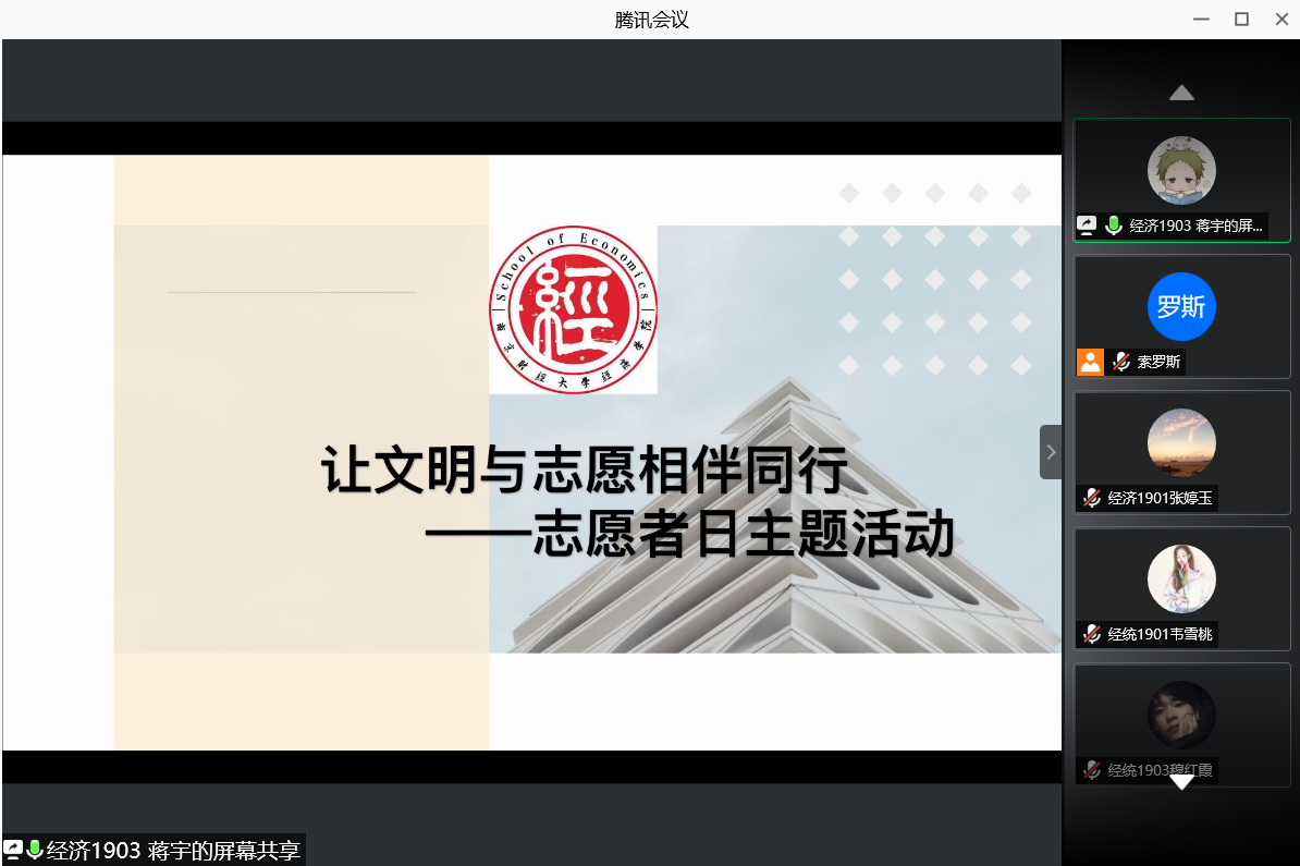活动由william威廉中文学生会发动组织,活动开始,由服务维权部部长蒋宇同学向大家汇报活动主题、流程、目的意义,展示学院志愿服务活动照片合集视频,并向同学们介绍了此次参与分享活动的志愿者代表。