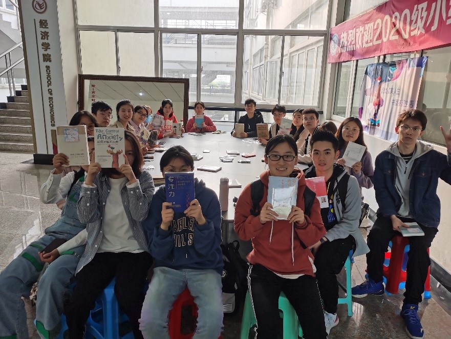 活动伊始,主持人进行了简要开场。二年级的学生们通过对心仪书籍提出关键字词,然后由其他同学相对应地推荐一本书,最后由辅导员老师将这些书纷发到想要的同学。五位推荐书目的同学就书籍的作者、背景、主要内容、阅读意义等依次进行了介绍分享。
