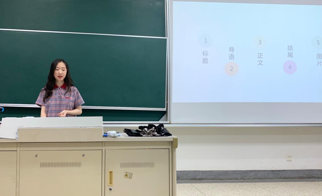 劳晓媛同学从新闻稿的“标题、导语、正文、结语、图片”五方面为切入点强调了新闻稿写作的注意点与其格式的重要性,投稿时也需根据不同的投稿需求进行格式更改。她表示通常情况下,新闻稿标题可选择富有趣味性、生动性的文词进行拟写,以吸引同学们的眼球;在导语部分中,时间、地点、人物、目的需简明扼要,达到一目了然的目的;正文内容需精确概括,主次分明,不掺杂个人主观情感与言论,可以适当引用人物发言;结尾部分可以借助“上帝视角”对活动进行抒情总结并以活动意义作为辅助。在分享的最后,同学们就结语注意点、名称排序、图片拍摄角度等问题进行积极提问,劳晓媛同学一一耐心解答。
