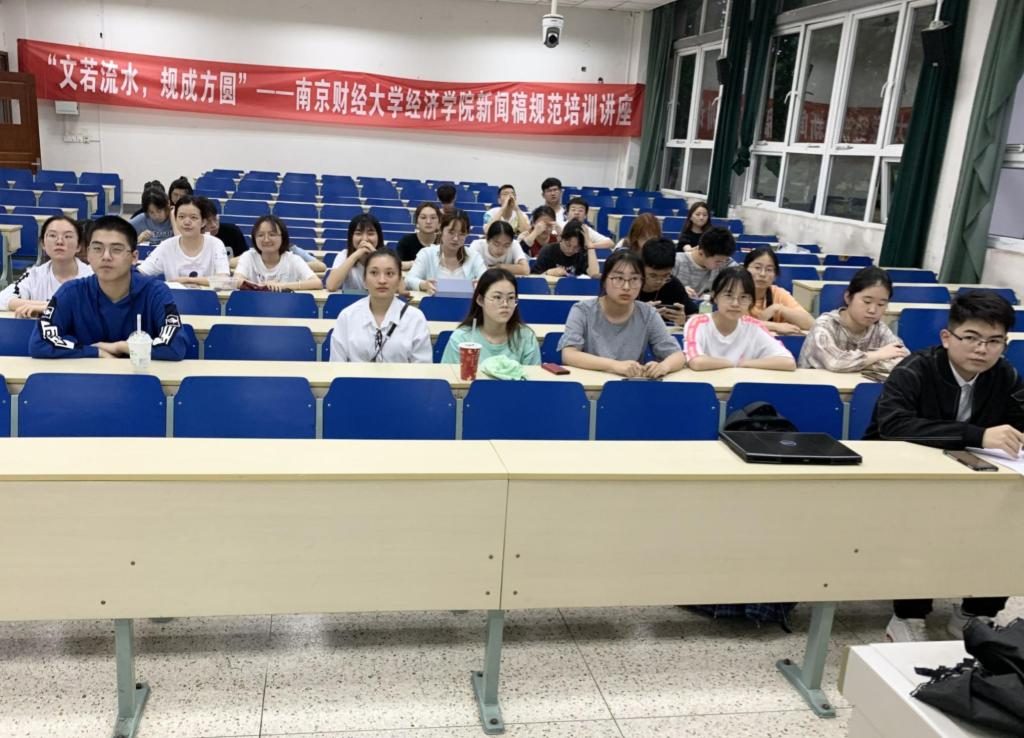 为提高我院学生新闻宣传写作水平,进一步规范学院官网新闻稿发布要求, 5月15日晚,我院在德经楼101教室开展了以“文若流水,规方成圆”为主题的新闻稿件写作培训活动,此活动由我院学生会媒体融创部主办,国际金融与贸易学院学生会执行主席劳晓媛同学作为嘉宾出席本次培训,向同学们分享她的新闻稿写作经验与心得。班级宣传委员、院级学生组织各部门新闻采写员、19级和20级部分学生参加了活动。