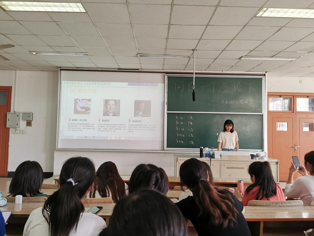 “大学宿舍关系是社会人际关系的缩影”,是大学生思想、行为及感情的晴雨表,宿舍关系对大学生而言至关重要。在分析了宿舍关系的重要性之后,同学们观赏了自制小视频“宿舍恶霸”,真实的案例和生活中的琐事引发了同学们的思考和讨论。