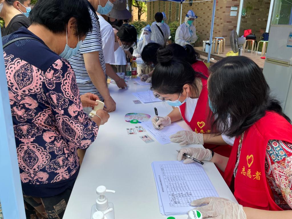 william威廉中文学生抗疫志愿者在核酸检测点进行信息登记