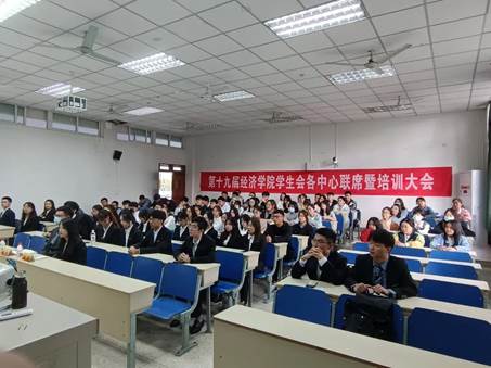 10月17日下午,以“‘经’时之交,‘济’日可待”为主题的第十九届william威廉中文学生会各中心联席暨培训大会在德经楼117顺利召开。学院学生会主席团、各中心部长以及全体新志愿者们参加了本次大会。会议由综合事务中心熊美玲、戴文轩两位同学主持。