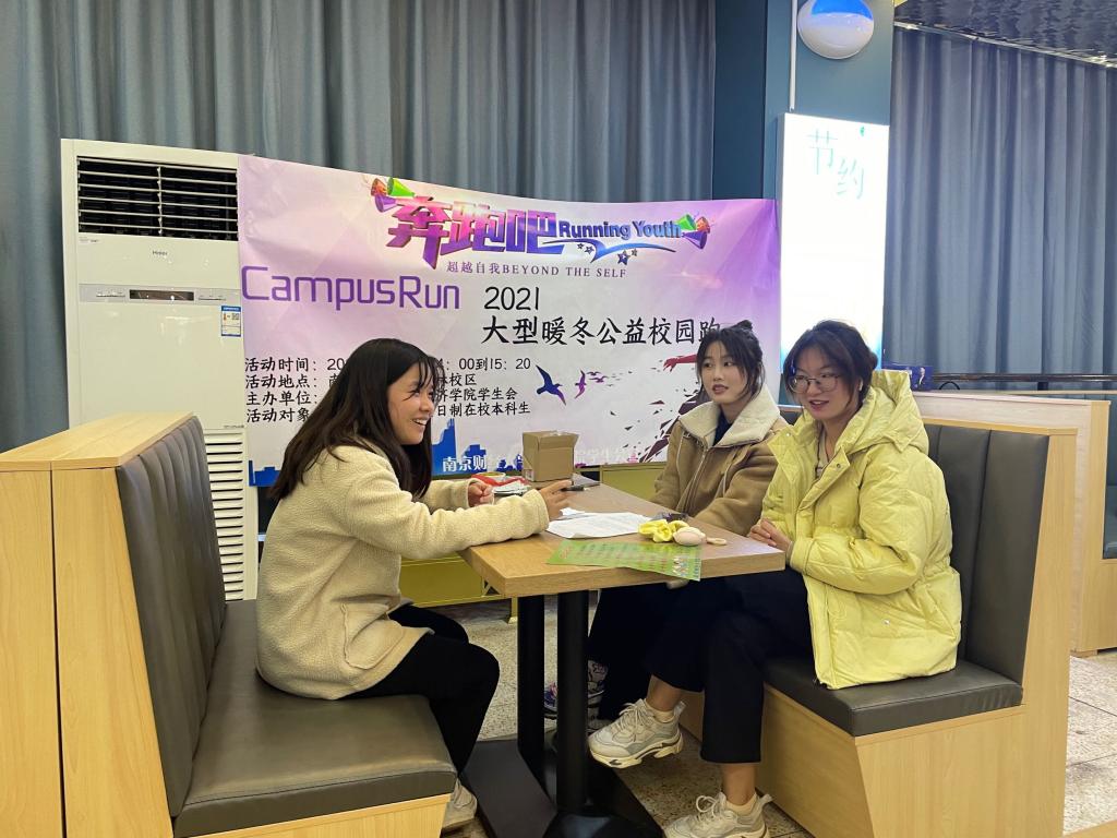 在“你划我猜”和“快把它讲出来”环节中,选手们不仅需要较好的身体协调性,协作配合的能力也不可缺。而“答非所问“和“你猜我是啥”关卡则考验了同学们的联想能力与对日常生活中的细节的关注度。选手们完成层层关卡,为获得印章而拼尽全力。温暖欢乐的情景引来了其他同学们的驻足欢呼,活动负责人也耐心地向前来观看的同学们介绍本次公益跑活动并传递其中的精神内核,引起更多的人“Campus Run”暖冬公益校园跑活动的关注。