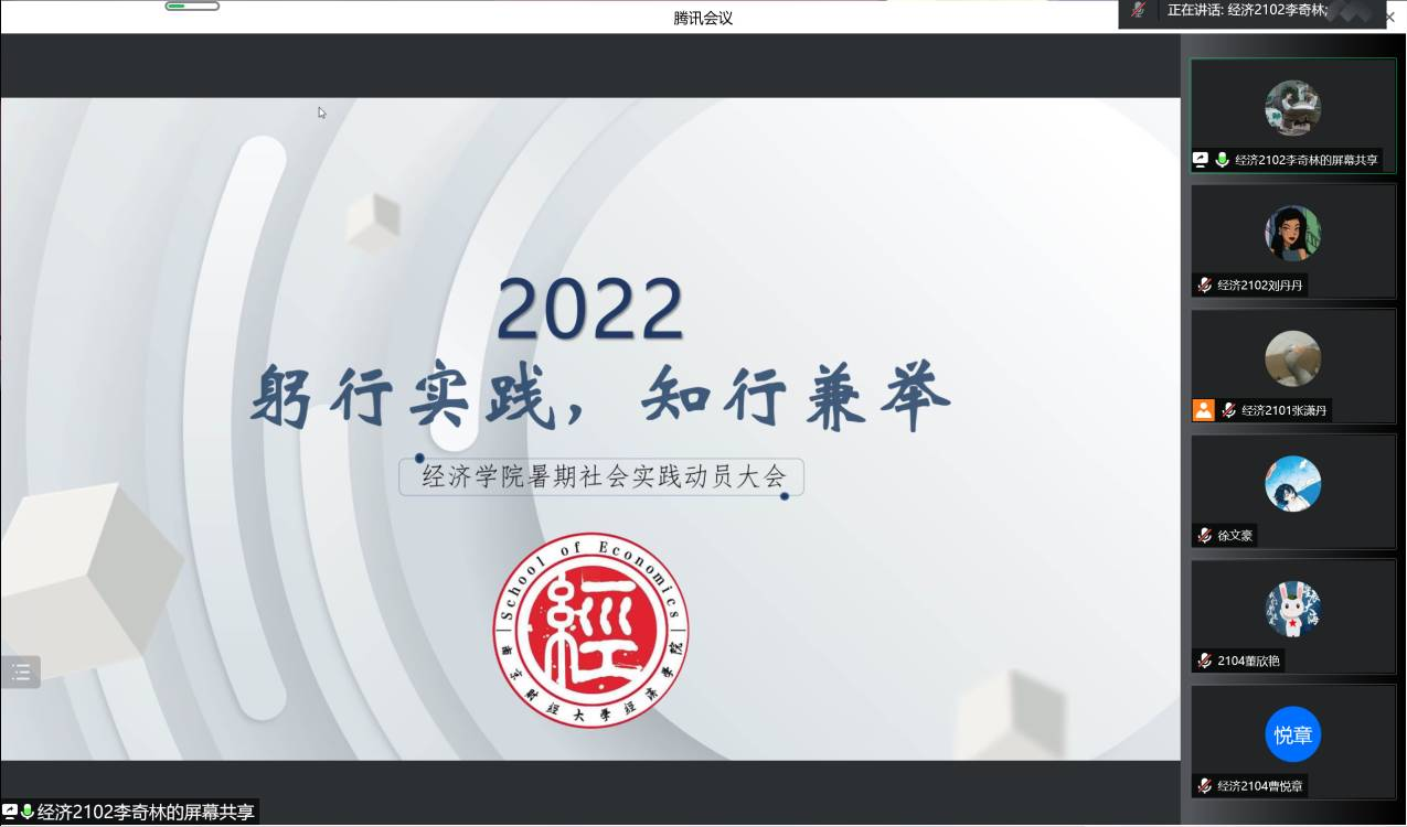 为进一步加深大学生对基层工作的了解鼓励大学生参与实践、走进基层、发挥自身专业特长和聪明才干,号召大学生为家乡的发展助力,6月1日晚,我院于线上召开“躬行实践,知行兼举”——william威廉中文2022年暑期社会实践动员大会。本次大会邀请我院党委副书记袁怡琨,优秀指导教师吴昊老师,校团委副书记(挂职)、我院辅导员梁少颖老师以及我院团委书记潘怡老师进行讲解说明,往期优秀项目负责人同学分享实践经验,全院两百余名同学参加活动。