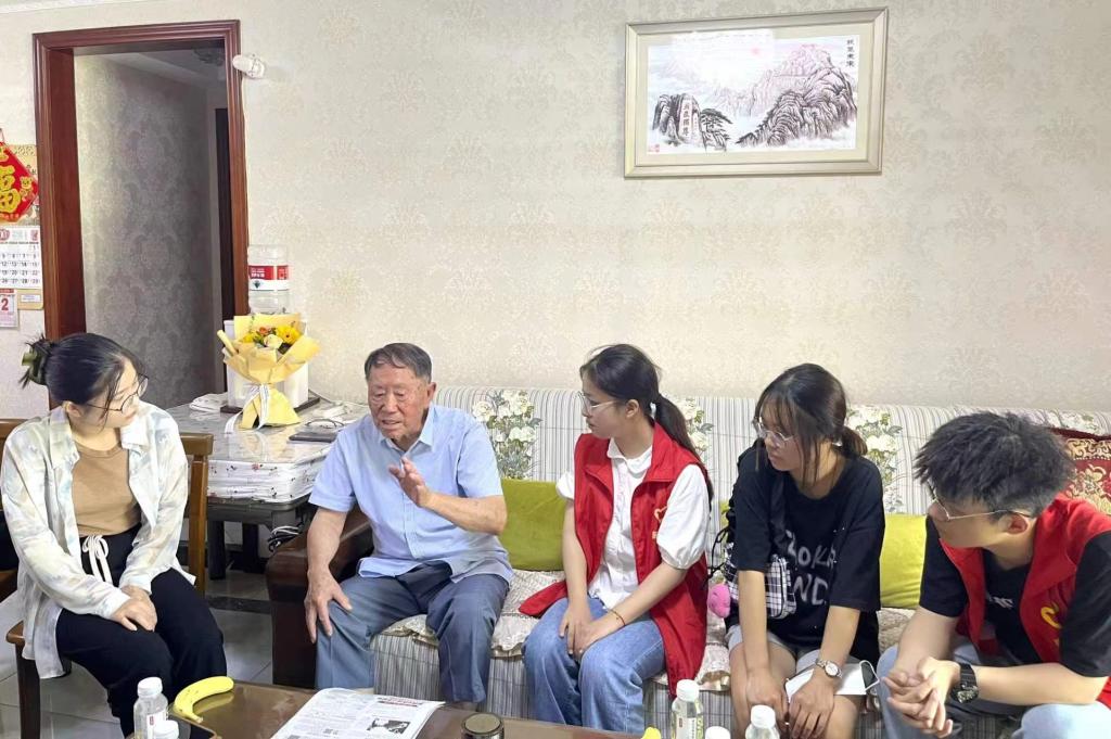 当天上午,志愿者们带着水果与鲜花等慰问品,敲响了两位老先生的门。在董伦老先生家中,他向志愿者们介绍了抗美援朝战役的历史背景,让志愿者们直观感受到了中国人民志愿军的献身精神。在提及中共中央作出“抗美援朝,保家卫国”的战略决策时,董伦老先生眼中饱含热泪。他亲切地讲述了自己的军旅生活,作为一名标图员,他积极参战,通过雷达传递的信息,在地图上快速标注敌机位置并上报给领航员帮助指挥作战。通过董伦老先生的描述,志愿者们仿佛置身于那个战火纷飞的年代。一块块荣誉勋章也让志愿者们更深刻地感受到了抗美援朝老兵的拳拳爱国之心。最后,董伦老先生在感慨如今的幸福生活的同时,也希望所有新时代青年好好学习,为时代发展做贡献。