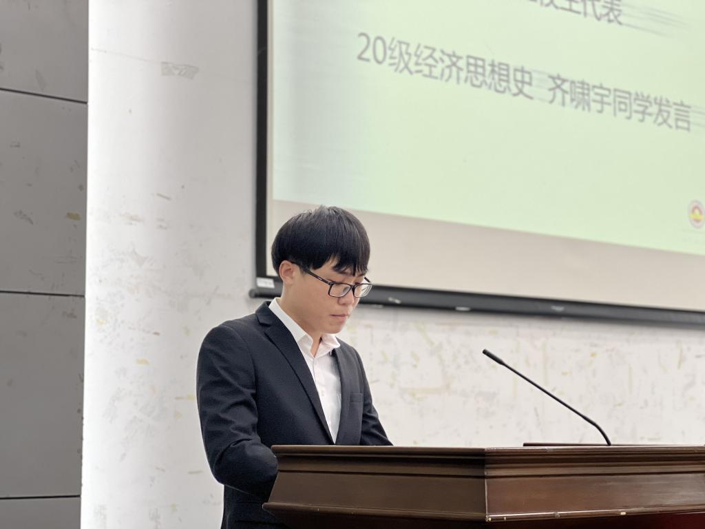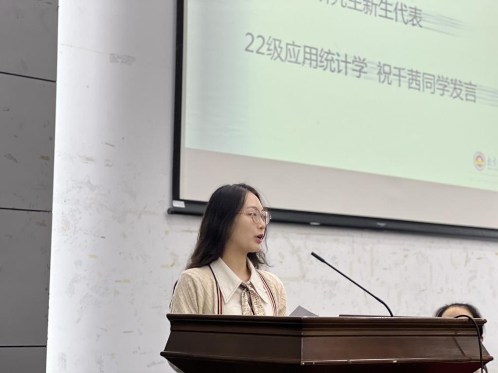 本科生在校生代表数统2001班桑海瑞从学校、学院、专业和生涯发展等四个方面和新生分享应如何度过大学四年。研究生在校生代表2020级经济思想史专业齐啸宇以南财校训与全体新生共勉,希望大家能在WilliamHill中文的沃土中,练就出过硬的本领,创造出更加辉煌的明天。本科生新生代表2201班赖嘉彝号召全体新生珍惜时光,把握机会,且行且思,不驰于空想,不骛于虚声。在对专业的潜心学习中,掌握知识,播种热爱,收获喜悦,不坠青云之志,永存赤子之心。研究生新生代表2022级应用统计专业祝千茜从自主性和创新性两个方面表达了对研究生阶段的向往和期待,希望在新的求学之路上活出卓越与非凡、充实与精彩。