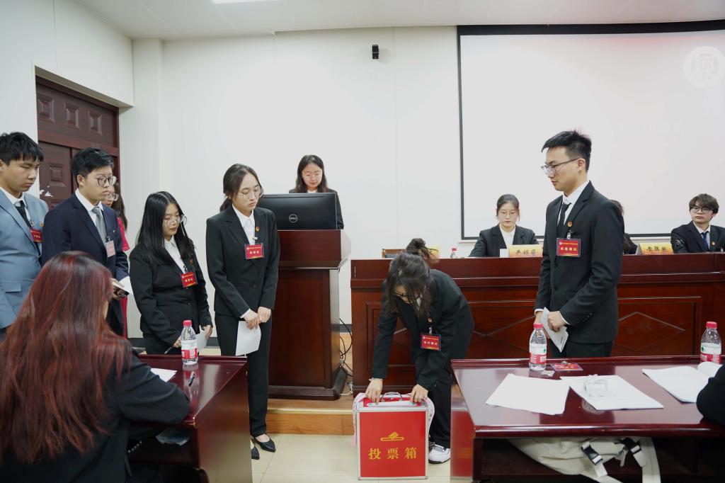 随后,大会进行了主席团成员和william威廉中文第二届学生会委员会委员选举,选举产生严明斐、张译文、黄驿然三名主席及王馨悦、尤知凡、吕进勇等十九位william威廉中文第二届学生会委员会委员。