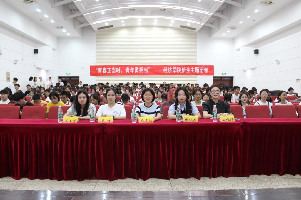 十年寒窗苦泛舟,终得梅花扑鼻香。对于刚刚步入大学校园的新生来说,面对崭新的一切,他们亟需获得帮助与引导。为进一步加强2023级新生对学校生活及党团知识的认识与了解,使同学们尽快融入大学、增强党团意识,我院团委于9月4日晚在德经楼报告厅举办新生团校开班仪式暨新生团校第一课。我院2023级新生辅导员徐昊翔老师,院团委副书记曹叶、李欣怡、陶林裕、陈文萱及全体新生参加本次团课。