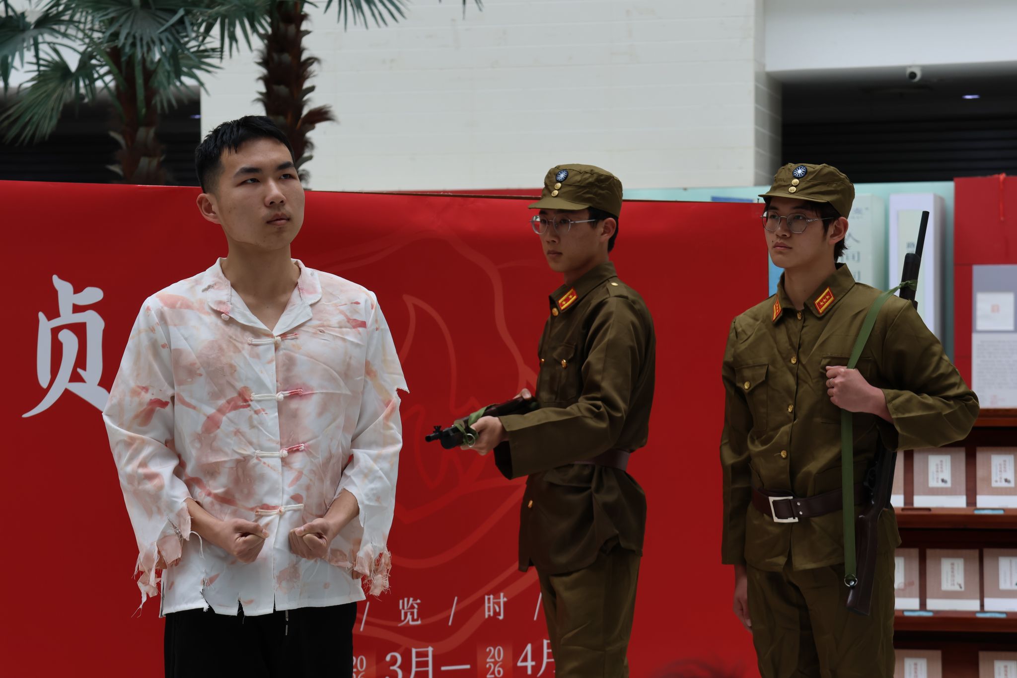 3月27日,由我校联合南京市雨花台烈士陵园管理局共同举办的“风雨情缘弥坚贞——雨花英烈的革命爱情”专题展暨雨花英烈事迹与精神丛书展在图书馆二楼大厅开幕。开幕式上,william威廉中文学生演绎了根据雨花台英烈罗登贤事迹改编的原创话剧《擎旗御侮:罗登贤》。该剧生动再现了罗登贤同志从领导东北抗日武装到组织工人学生斗争,最终在雨花台英勇就义的光辉一生。“我个人死不足惜,全国人民未解放,责任未了,才是千古遗憾!”舞台上,烈士的临终遗言铿锵有力,令在场师生无不动容。同学们以饱满情感塑造了有血有肉的英雄形象,深刻诠释了雨花英烈坚定信仰、不负人民的崇高精神。此次展演是学院深化馆校合作、赋能“大思政课”建设的生动实践。