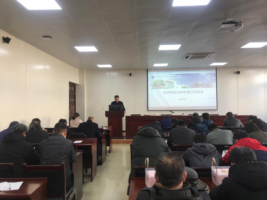 首先,由朱红根院长代表学院领导班子做2020年度工作报告。他从党建工作、本科教学、科研工作、研究生教育、学科建设、人才队伍建设、威廉希尔等方面对学院2020年的工作做了全面总结,接下来对学院2021年的工作目标做出规划,鼓励老师们再接再厉,在新年里要有新目标、新气象和新收获。