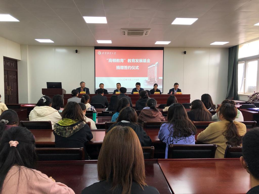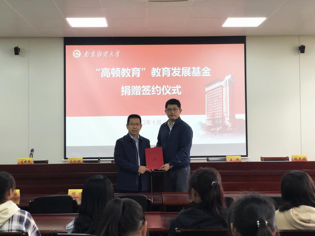 校党委常委、宣传部长石奇对莅临参加签约仪式的领导、嘉宾表示欢迎,对高顿教育的关心与帮助表示感谢,并简要介绍了学校的历史以及发展近况。他表示,社会捐助是国际知名大学排名的重要指标,也必将成为我国高等教育发展的重要方向。他希望双方以此次合作为契机,不断加强在人才培养、科学研究、学术交流和教学实践等各方面的合作,开拓创新,着力探索和发展校企深度合作的新思维、新领域、新途径。