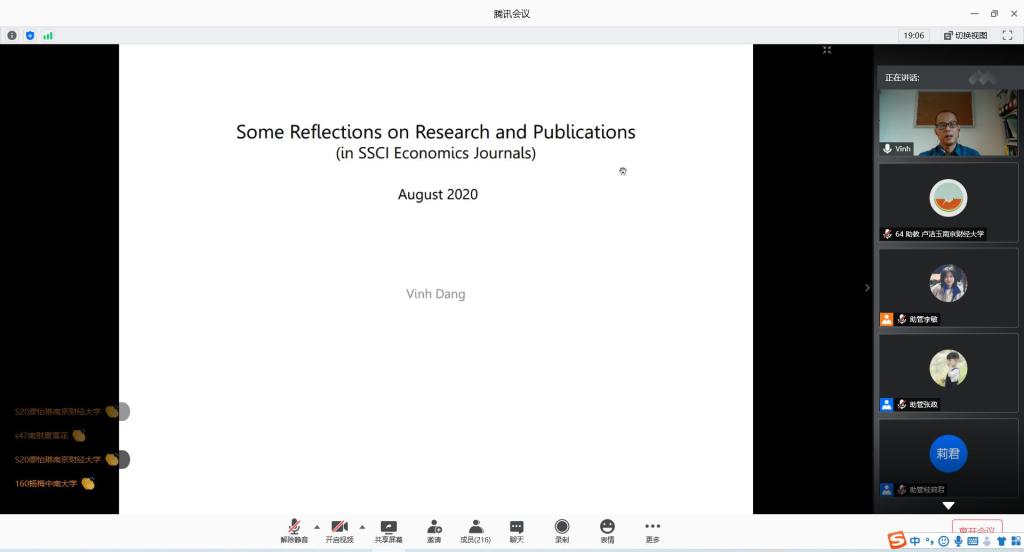 Dang老师根据他多年来SSCI论文的写作经验,与学员们分享了他在论文写作中需要重视的几个方面:内容上,Dang老师让大家重视实验的随机性、意外事件或政策冲击、数据的唯一性与新颖性以及对未解决问题的新观点或新方法这四个方面;写作上,Dang老师提醒学员们应注意避免语法等错误以及表达应连贯、流畅,尤其是引言与摘要,并提出可以通过阅读高质量期刊上的文章来提高自己的写作水平,还带领学员们梳理了文章的写作顺序。除此之外,Dang老师还分享了自己在投稿过程中的几点经验。最后,Dang老师讲解了三篇他已经发表的文章的创作思路,学员们纷纷表示收获颇丰。