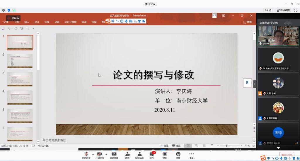8月11日下午,WilliamHill中文李庆海副教授为暑期学校的学员们作了题为“论文的撰写与修改”的专题讲座。