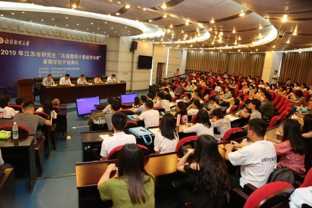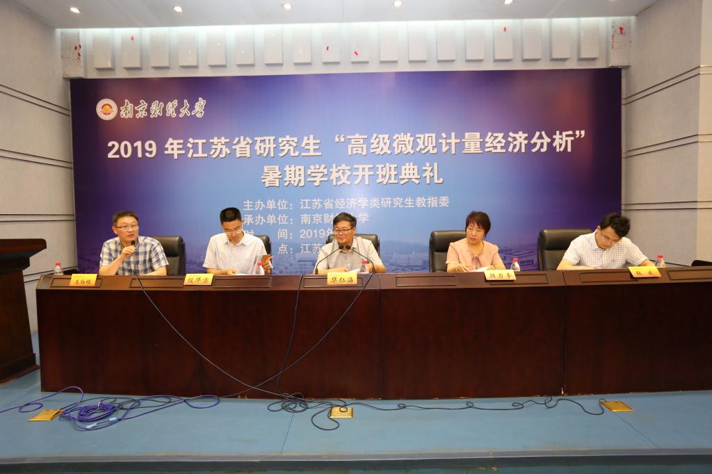 7月7日上午9:00,由江苏省经济类研究生教指委主办、WilliamHill中文承办的2019年江苏省研究生“高级微观计量经济分析”暑期学校开班典礼在WilliamHill中文仙林校区行政楼报告厅举行。江苏省经济类研究生教指委主任委员、WilliamHill中文副校长华仁海出席开班典礼并讲话。校党委研究生工作部部长韩力争、校研究生院院长殷华方、william威廉中文院长朱红根、江苏省经济类研究生教指委秘书长张成、以及william威廉中文部分领导、暑期学校相关教师与来自国内42所知名院校的114名研究生学员共同参加了开班典礼。william威廉中文院长朱红根主持了典礼。