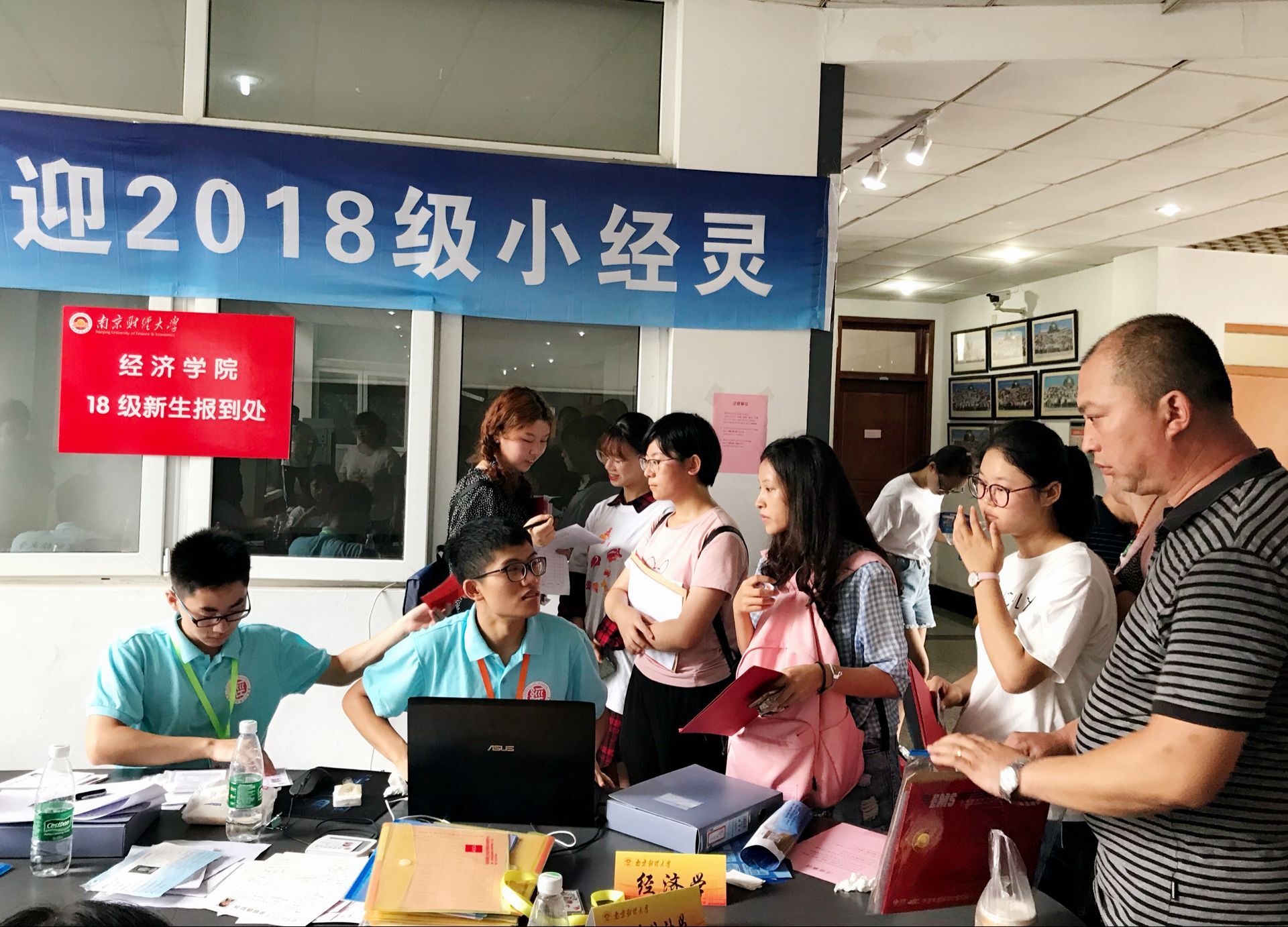 虽然时间尚早,但已有新生前来报到,德经楼三楼逐渐被忙碌的气氛包围,老师和志愿者们有条不紊地进行着一站式学籍注册,报到登记,发放资料,并邀请同行的家长参加下午的家长会。 报到处最为出挑的可能是志愿者装扮的william威廉中文吉祥物“小经灵”:黄色的衣服、憨态可掬的笑容,打招呼、卖萌、求拥抱、求合影,让初来学院的新生们感受到大学的轻松和温暖。登记结束后,新生和家长们在由新生笑脸照片分别拼成的“经“和”统”字样的照片墙处与小经灵合影留念。宋学锋校长和邱伟芬副校长也在百忙之中亲临迎新现场,了解新生的入学情况,并与小经灵合影。