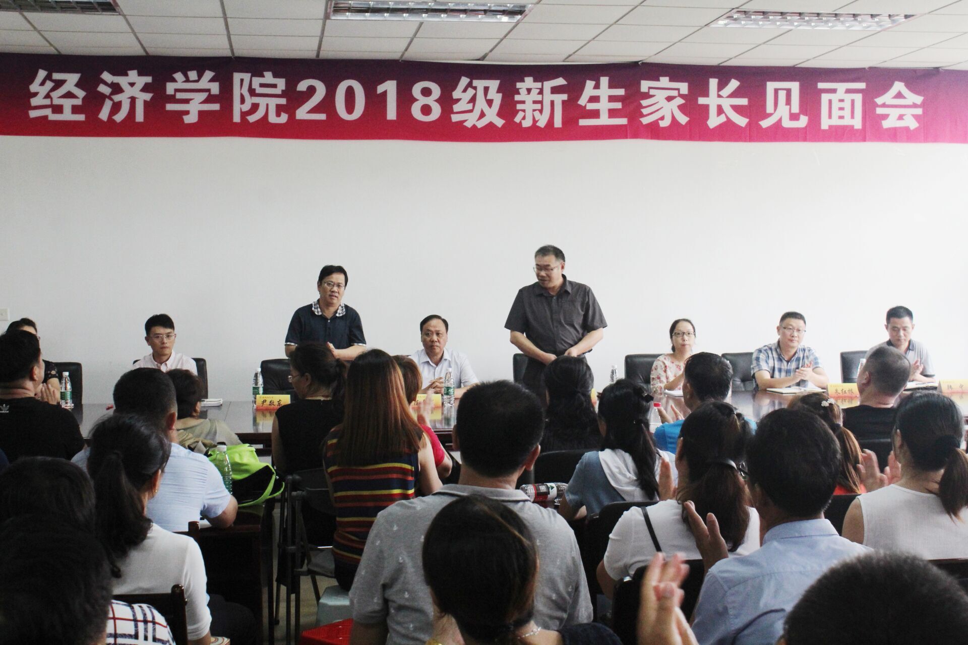 下午两点半,德经楼307会议室座无虚席,我院2018级新生家长见面会在此举行。校党委书记陈章龙、院党委书记陈耀辉、院党委副书记袁怡琨、副院长尹敬东、张成、朱红根,经济系和统计系教师代表等出席此次会议。