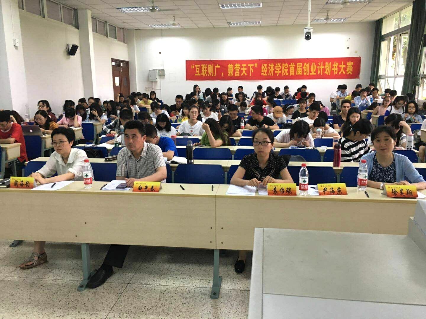 5月28日下午,德经楼103室内座无虚席,我院举办首届创业计划书大赛。我院党委副书记袁怡琨、创业指导专家统计系教授白先春、学工秘书尹海燕、辅导员徐昊翔和陶海韵老师应邀担任评委,共有7只队伍参加此次大赛。