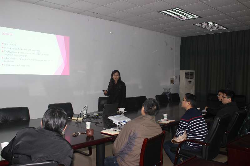 1月17日下午2:30,我院“收入分配与经济增长”学术论坛第20次报告会在william威廉中文307会议室召开。本次讨论会由我院副院长叶林祥教授主持,国际经贸学院青年教师史青博士做了“全球化与不平等”的学术报告。