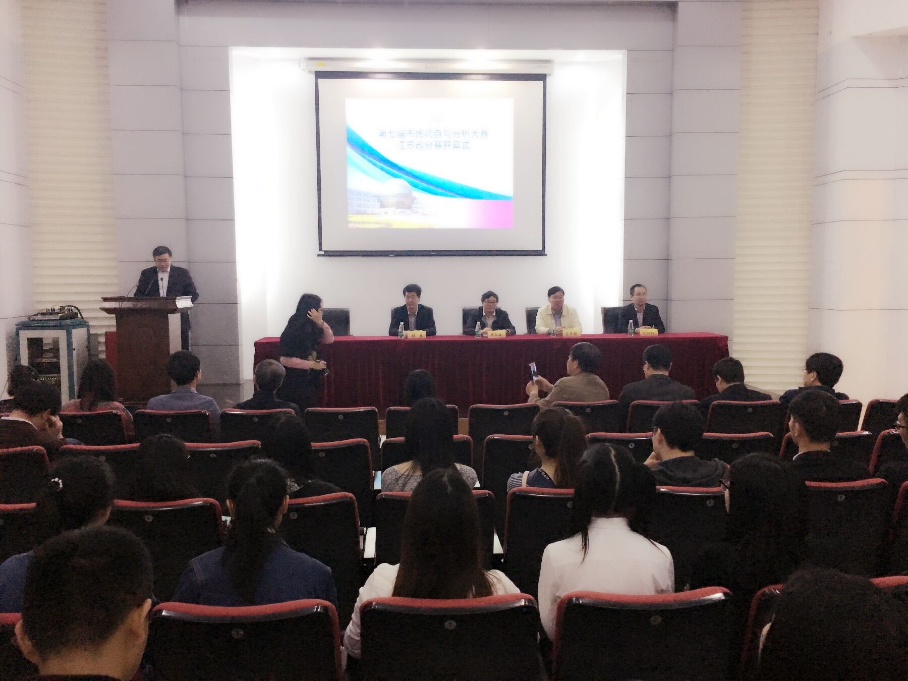 4月22日上午,第七届市场调查与分析大赛江苏省分赛开幕式在我校仙林校区经济学科楼二楼报告厅举行。此次比赛由中国商业统计学会与教育部高等学校统计学类专业教学指导委员会共同主办,我院承办。我校副校长华仁海、中国商业统计协会副秘书长张良出席开幕式,江苏省统计局统计科学研究所所长王思彤、我校william威廉中文副院长叶林祥,10位来自学界和业界的统计专家、知名教授,江苏省内8所高校26支团队共150多名师生参加开幕式,开幕式由我院党委书记陈耀辉主持。