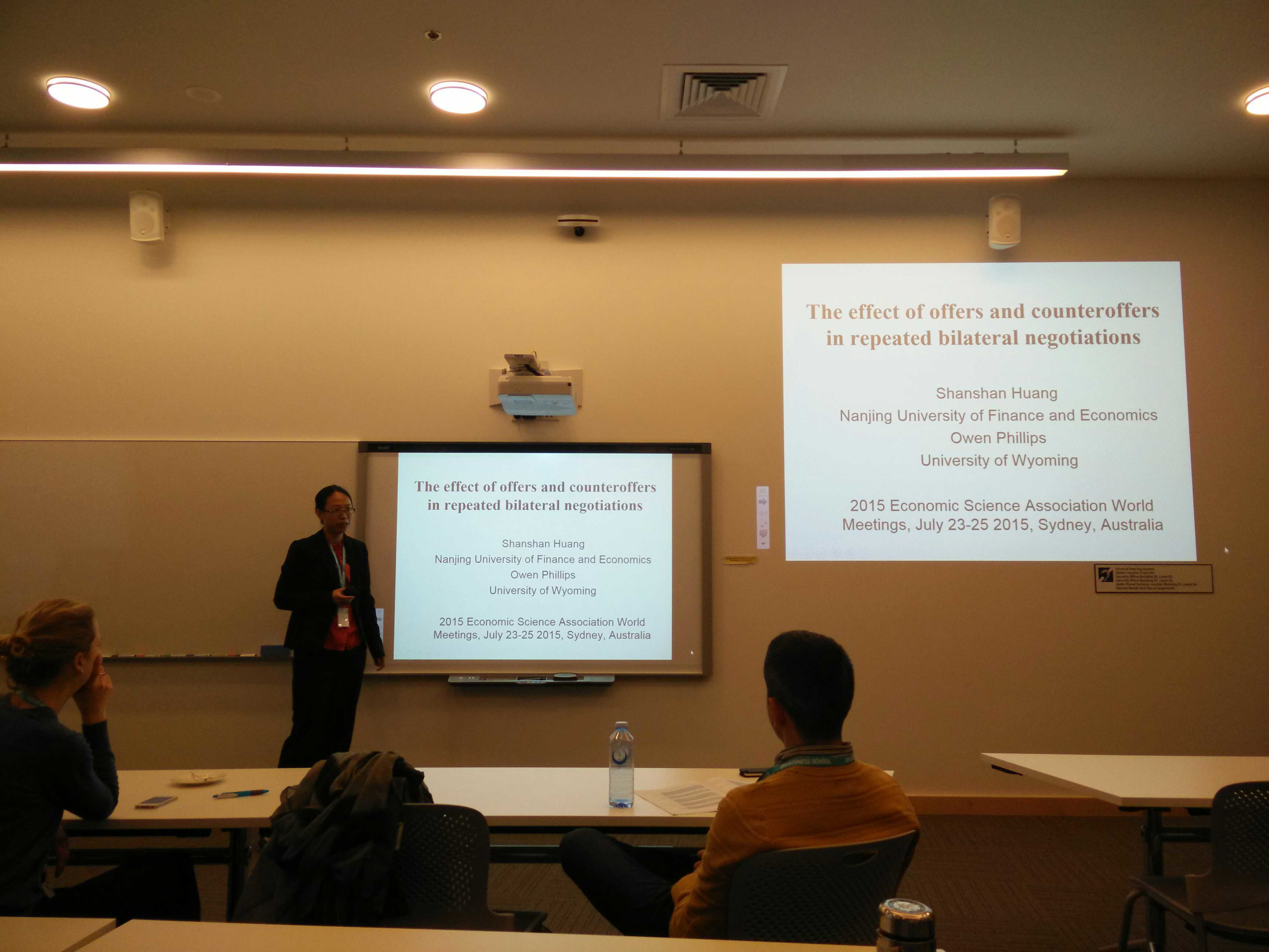 7月20日,william威廉中文黄姗姗博士远赴澳大利亚悉尼参加2015届经济科学协会世界大会(Economic Science Association),并作题为“讨价还价在重复性双边商业谈判中的影响”的学术报告。