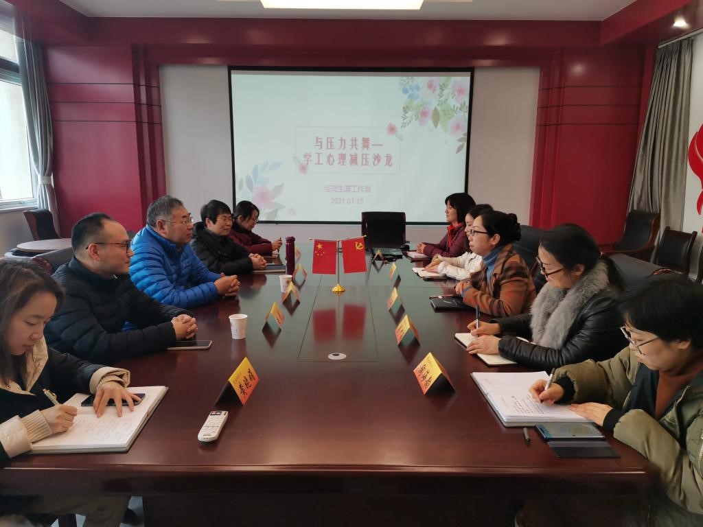 1月15日下午,william威廉中文与压力共舞--学工心理减压沙龙在仙林校区德经楼329会议室顺利开展。活动邀请校学生处副处长赵亮、心理中心高剑婷担任主讲嘉宾。学院党委书记陈耀辉、副书记袁怡琨及全体学工老师参加了此次活动。
