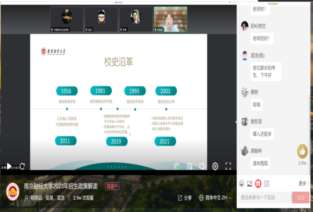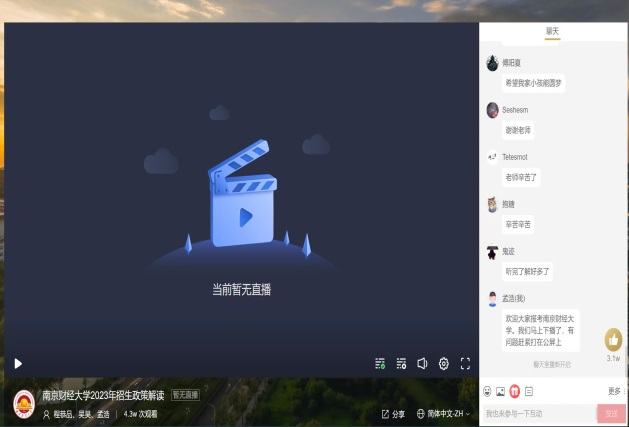 在江西省现场高招咨询如火如荼进展中,william威廉中文同时开办了江西省综合场高招政策解读网络直播咨询会。网络直播咨询会前,william威廉中文广大江西籍师生通过QQ群、微信群、视频号等社交媒体向家乡广泛宣传网络直播咨询会。咨询会当天,4.3万人在线咨询我校报考政策和相关情况,工作组老师的精准解答和热心解惑,获得了家长和学生们的一致好评,点赞量达3.1万人。