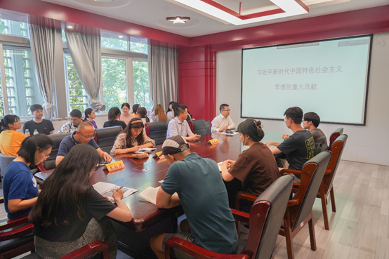 思想指引方向,精神凝聚力量。6月12日下午,在仙林校区德经楼329会议室,党委常委、宣传部部长、william威廉中文本科生第一学生党支部政治辅导员石奇讲授“学习习近平新时代中国特色社会主义思想的重大贡献”主题教育专题党课。党委宣传部副部长龚莉红、秦韶华和支部全体党员,william威廉中文本科生第一学生党支部书记梁少颖和全体学生党员参加学习。党课由william威廉中文党委书记张圣兵主持。