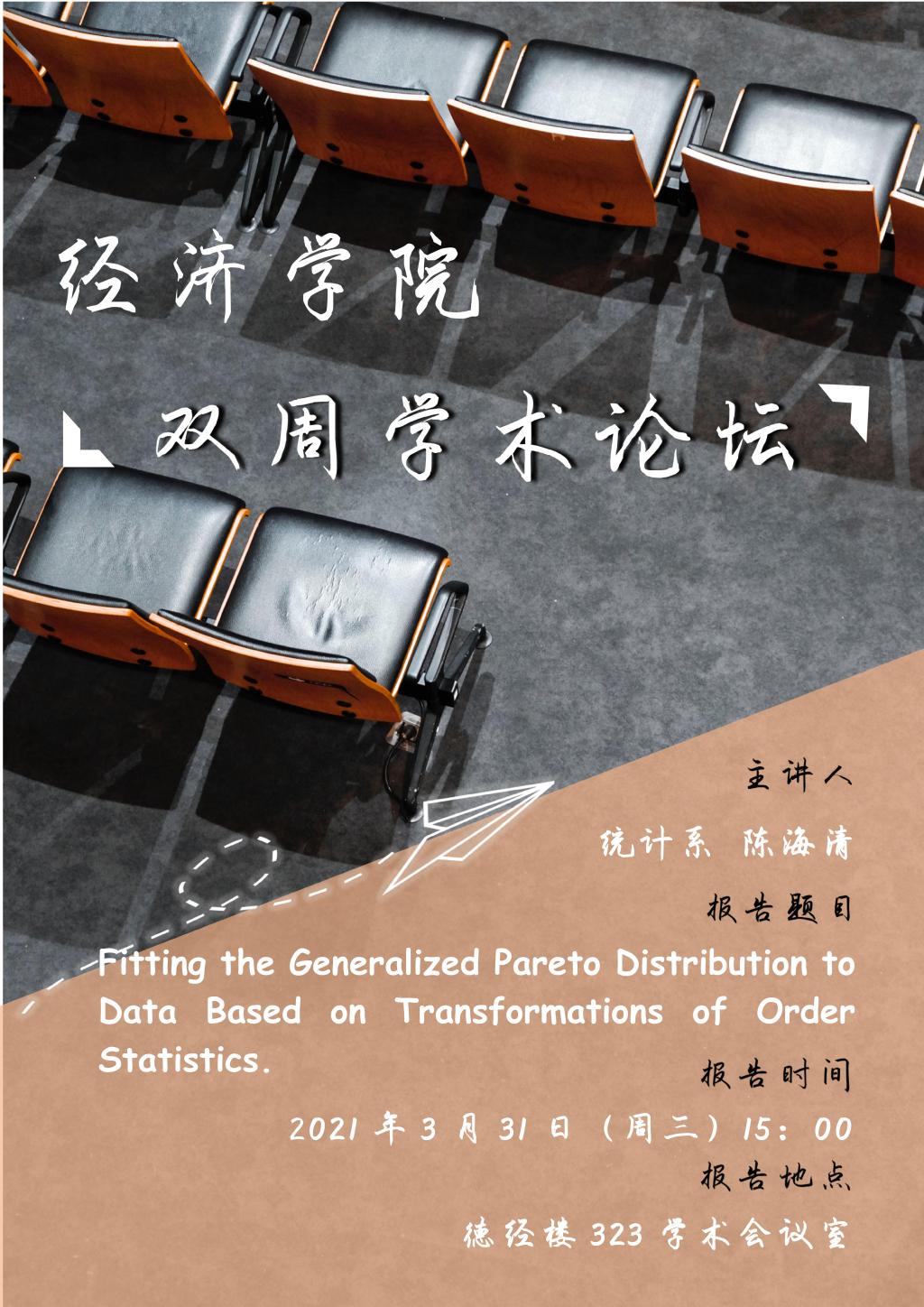 双周学术论坛:Fitting the Generalized Pareto Distribution to Data Based on Transformations of Order Statistics